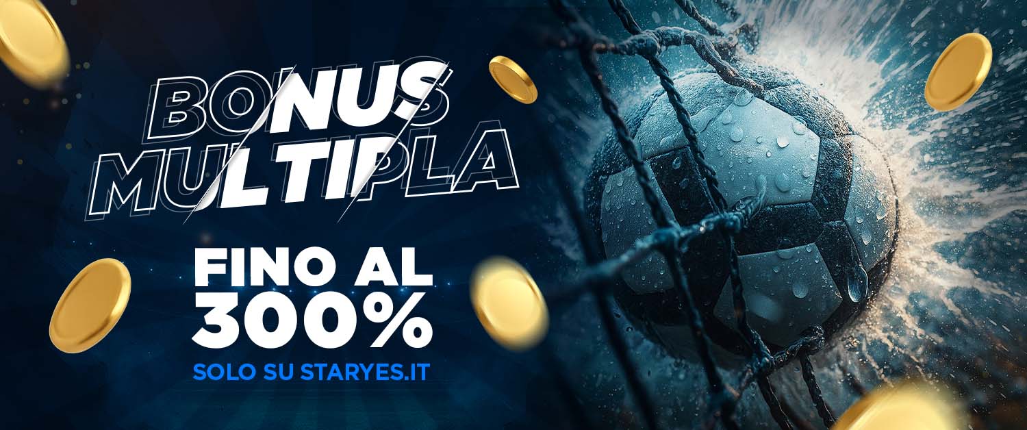 Con il Bonus Multipla puoi moltiplicare la potenza delle tue giocate fino al 300%. Il sistema calcola automaticamente la vincita potenziale comprensiva di bonus, sia per multiple che per sistemi, anche combinando pre-match e Live Betting.