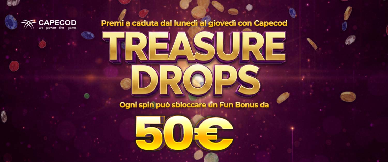 La nuova promozione Treasure Drops parte dal 09/02/2026 e ti accompagna ogni settimana dal lunedì al giovedì.