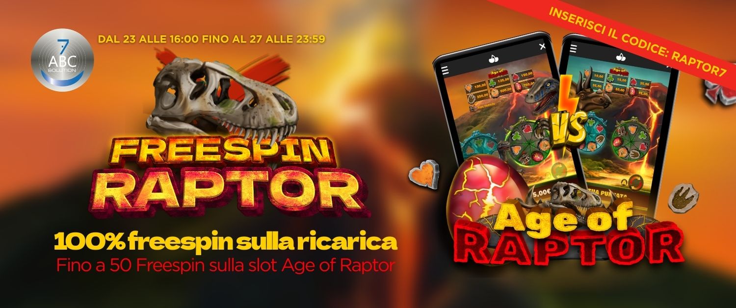 FREESPIN RAPTOR - Dal 23 alle 16:00 fino al 27 alle 23:59