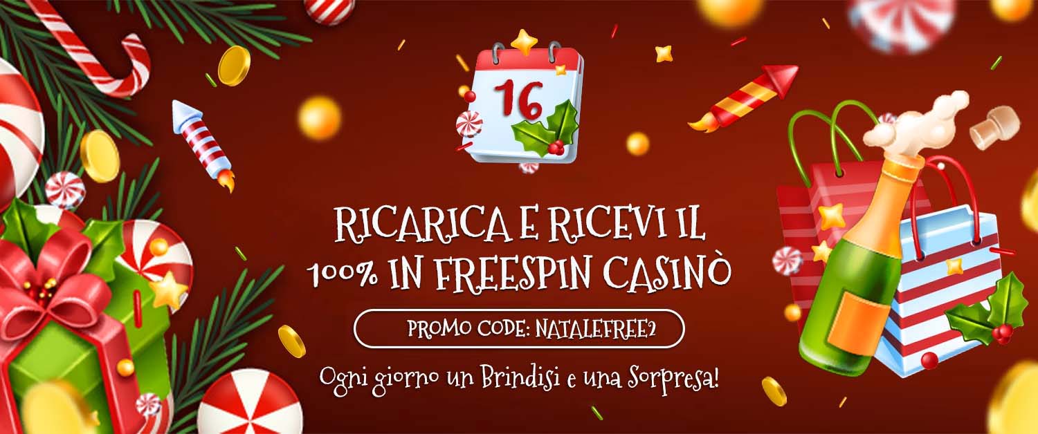 🎁 Inserisci il codice promo: NATALEFREE2 durante la ricarica e ottieni fino a 50 Freespin da usare sulle slot della categoria FREESPIN.