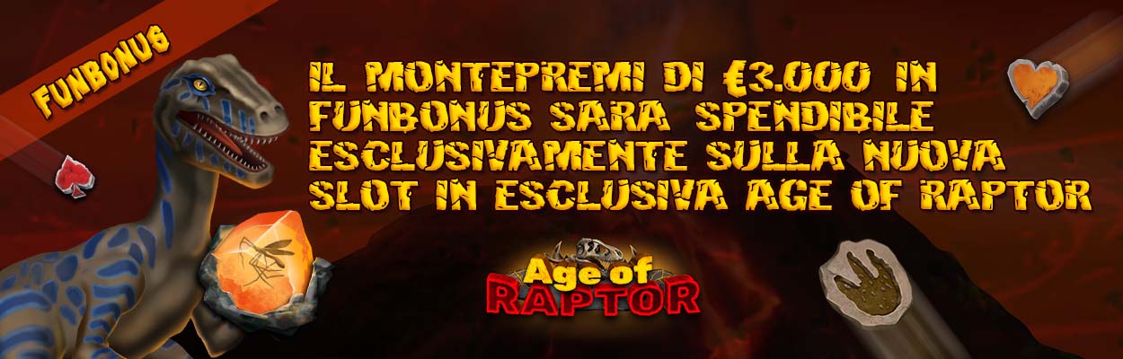 ⚡ Novità esclusiva: Il FUN BONUS sarà spendibile solo sulla nuovissima slot esclusiva “Age of Raptor”!