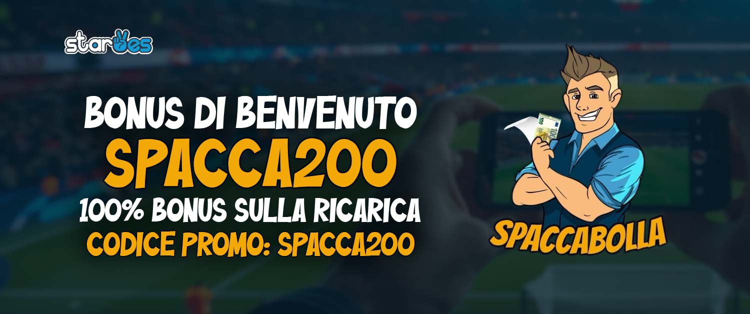 Cod.Promozione SPACCA200 un BONUS del 100% sulla ricarica, fino ad un massimo di 200€ sport.